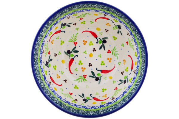 This Polish Pottery 6" Bowl - Pepper Perfection is handmade and handpainted by the Ceramika Artystyczna factory in Boleslawiec, Poland.