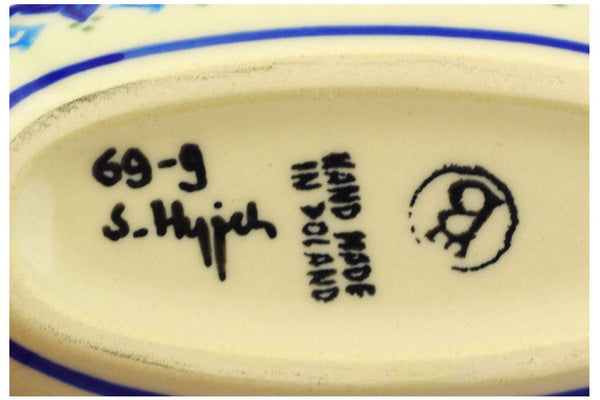 This Polish Pottery 6" Condiment Dish - Aster Patches is handmade and handpainted by the Ceramika Bona factory in Boleslawiec, Poland.