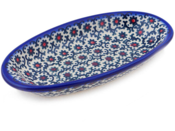 This Polish Pottery 6" Condiment Dish - Field Of Black Daisies is handmade and handpainted by the Ceramika Bona factory in Boleslawiec, Poland.