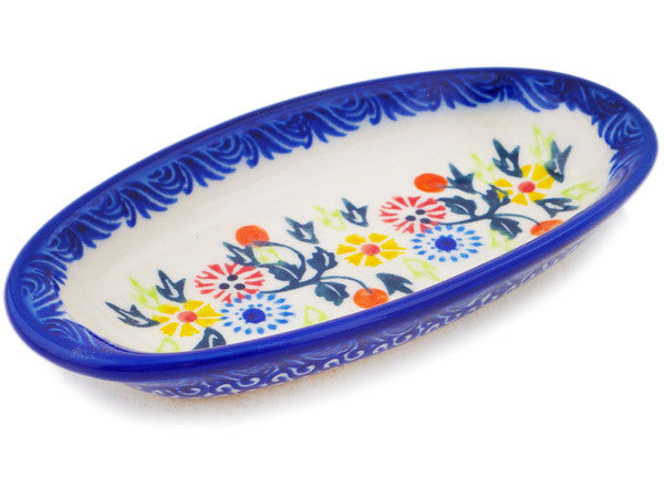 This Polish Pottery 6" Condiment Dish - Pastel Spring Wreath is handmade and handpainted by the Ceramika Bona factory in Boleslawiec, Poland.