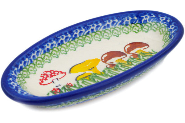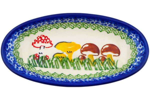 This Polish Pottery 6" Condiment Dish - Wild Mushroom Picking is handmade and handpainted by the Ceramika Nina factory in Boleslawiec, Poland.