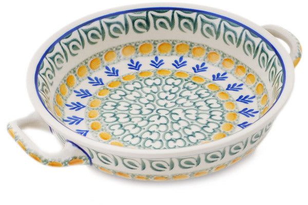 This Polish Pottery 8" Round Baker with Handles - Autumn Wheatfields is handmade and handpainted by the Ceramika Artystyczna factory in Boleslawiec, Poland.