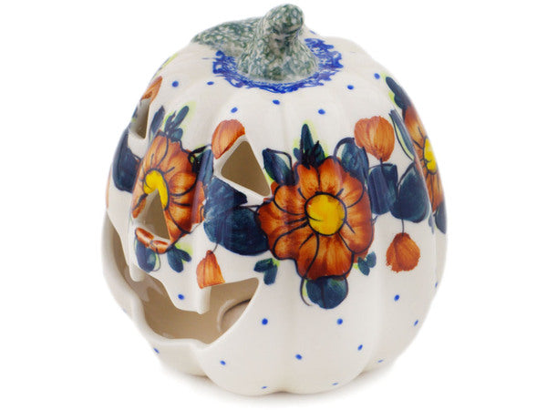 This Polish Pottery 6" Jack O Lantern Candle Holder - Autumn Pansies is handmade and handpainted by the Ceramika Bona factory in Boleslawiec, Poland.