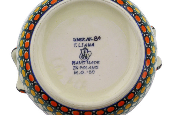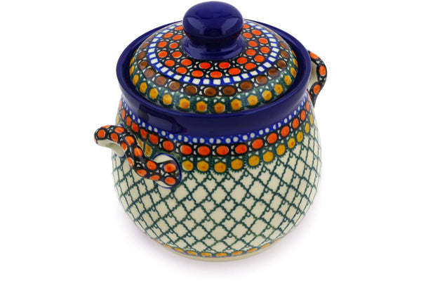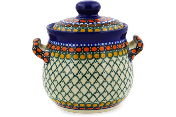 This Polish Pottery 6" Jar with Lid and Handles - Orange Tranquility is handmade and handpainted by the Ceramika Artystyczna factory in Boleslawiec, Poland.
