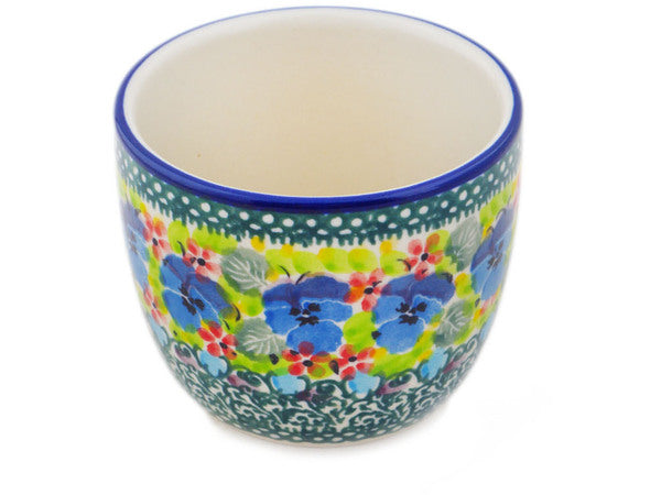 This Polish Pottery 6 oz Tumbler - Pretty Pansies is handmade and handpainted by the Ceramika Artystyczna factory in Boleslawiec, Poland.