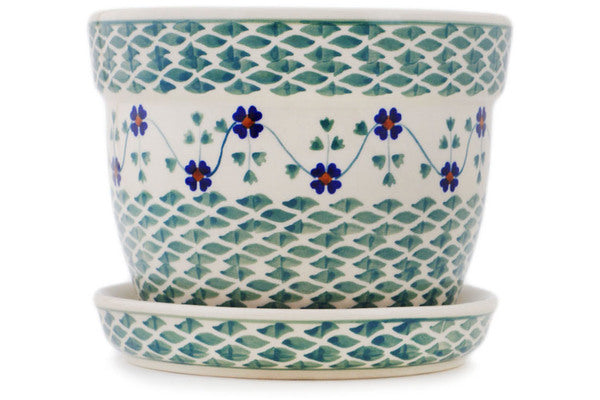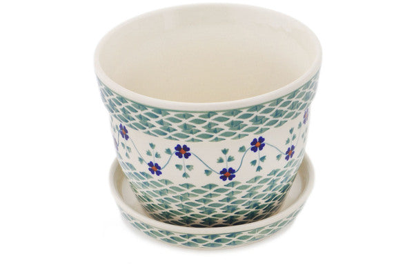 This Polish Pottery 6" Planter - Lucky Blue Clover is handmade and handpainted by the Manufaktura factory in Boleslawiec, Poland.