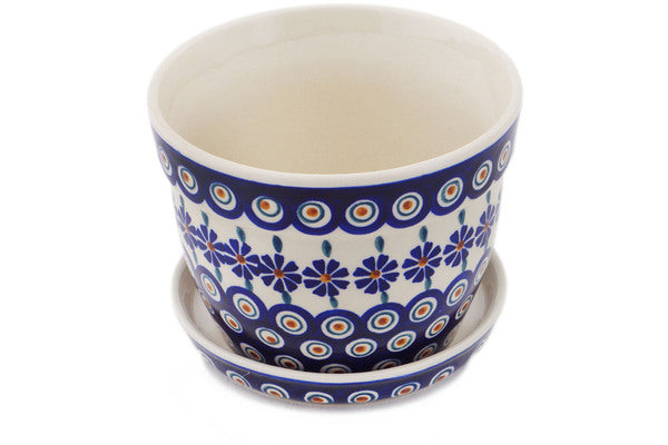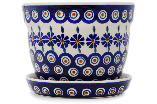 This Polish Pottery 6" Planter - Peacock is handmade and handpainted by the Manufaktura factory in Boleslawiec, Poland.