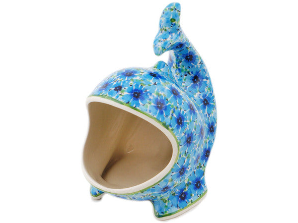 6" Salt Cellar, Salt Pig, Sponge Holder, Whale - Blue Bachelor Buttons