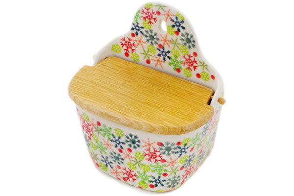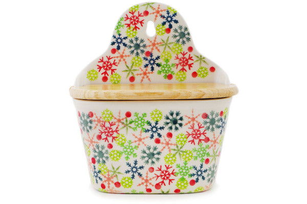 This Polish Pottery 6" Wall Jar - Holly Jolly is handmade and handpainted by the Ceramika Artystyczna factory in Boleslawiec, Poland.