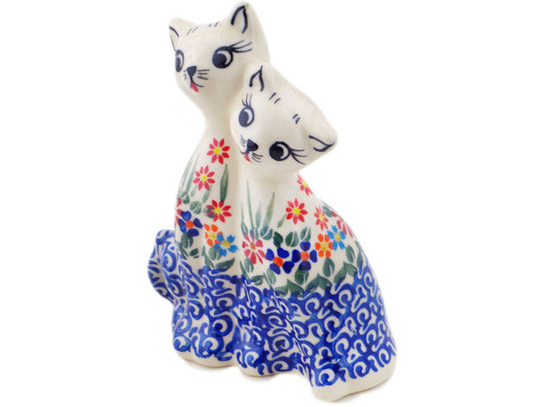 This Polish Pottery 7" Cat Figurine - Blissful Daisy is handmade and handpainted by the Ceramika Bona factory in Boleslawiec, Poland.