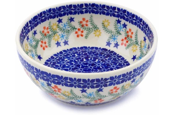 This Polish Pottery 7" Bowl - Wreath Of Bells is handmade and handpainted by the Ceramika Bona factory in Boleslawiec, Poland.