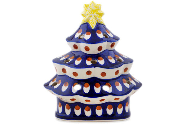 This Polish Pottery 7" Christmas Tree Candle Holder - American Peacock is handmade and handpainted by the Manufaktura factory in Boleslawiec, Poland.
