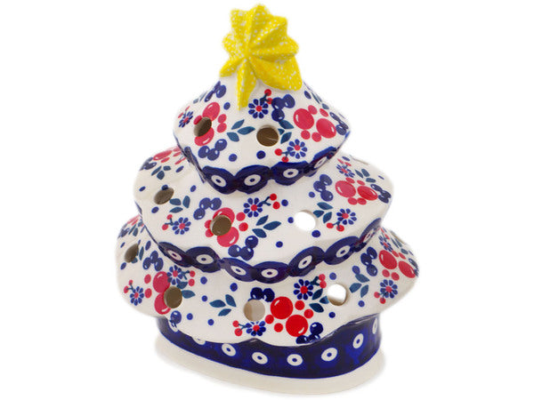 This Polish Pottery 7" Christmas Tree Candle Holder - Burst Of Berries is handmade and handpainted by the Manufaktura factory in Boleslawiec, Poland.