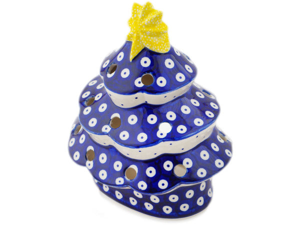 This Polish Pottery 7" Christmas Tree Candle Holder - Peacock Eyes is handmade and handpainted by the Manufaktura factory in Boleslawiec, Poland.