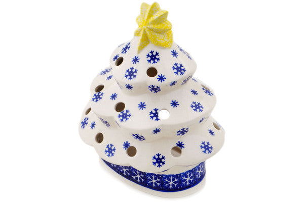 This Polish Pottery 7" Christmas Tree Candle Holder - Winter Butterfly is handmade and handpainted by the Manufaktura factory in Boleslawiec, Poland.