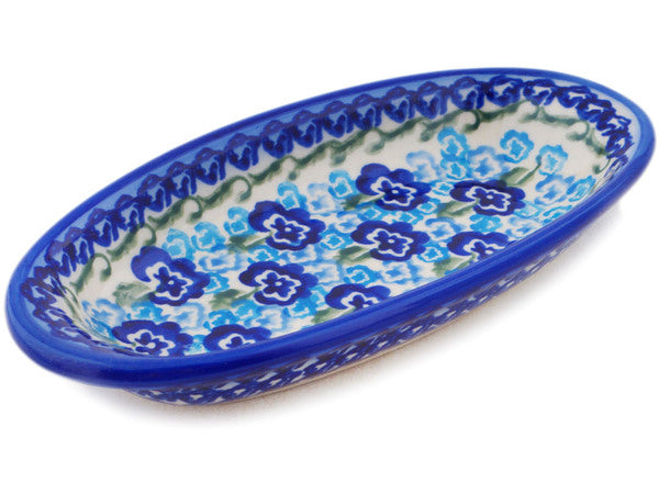 This Polish Pottery 7" Condiment Dish - Blue Kiss Blooms is handmade and handpainted by the Ceramika Bona factory in Boleslawiec, Poland.