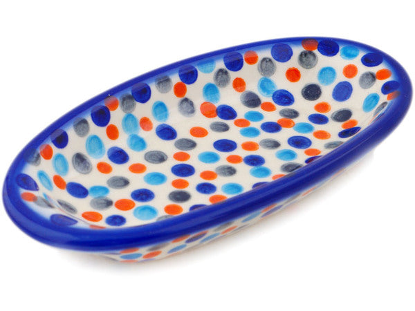 This Polish Pottery 7" Condiment Dish - Polka Dot Frenzy is handmade and handpainted by the Ceramika Bona factory in Boleslawiec, Poland.