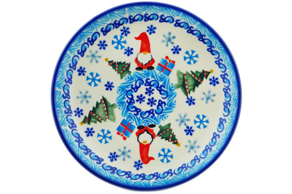 This Polish Pottery 7" Plate - Winter Gnome is handmade and handpainted by the Ceramika Bona factory in Boleslawiec, Poland.