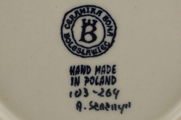 This Polish Pottery 8" Plate - Blue Poppies is handmade and handpainted by the Ceramika Bona factory in Boleslawiec, Poland.