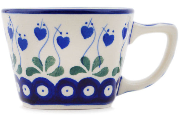 This Polish Pottery 7 oz Cup - Bleeding Heart Peacock is handmade and handpainted by the Ceramika Artystyczna factory in Boleslawiec, Poland.