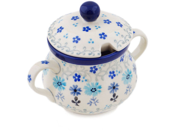 This Polish Pottery 7 oz Sugar Bowl - Baby Blue Garden is handmade and handpainted by the Ceramika Artystyczna factory in Boleslawiec, Poland.