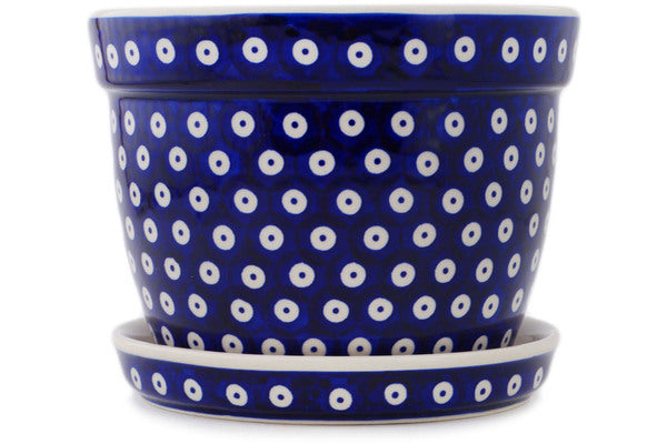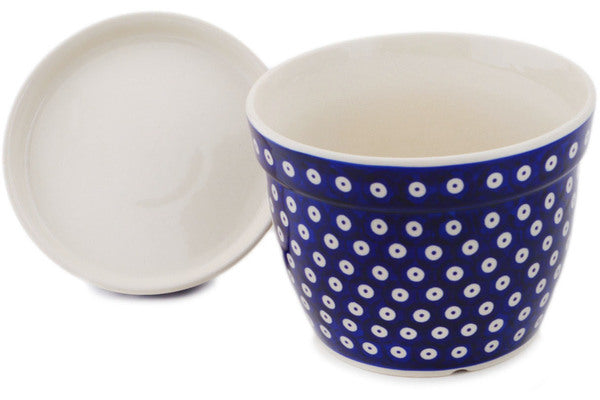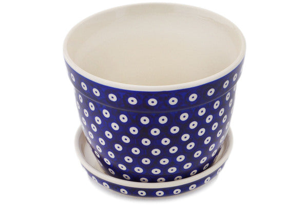 This Polish Pottery 7" Planter - Peacock Eyes is handmade and handpainted by the Manufaktura factory in Boleslawiec, Poland.