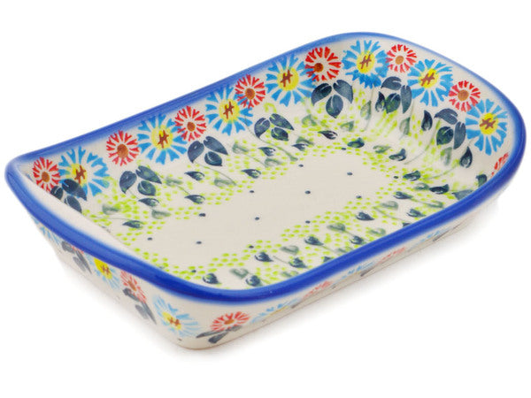 This Polish Pottery 7" Platter with Handles - Long-stemmed Beauties is handmade and handpainted by the Ceramika Bona factory in Boleslawiec, Poland.