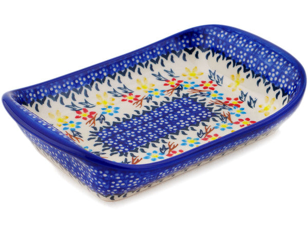 This Polish Pottery 7" Platter with Handles - Spring Flower Ring is handmade and handpainted by the Ceramika Bona factory in Boleslawiec, Poland.