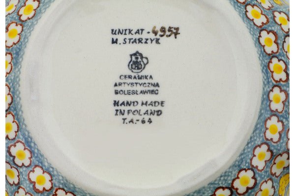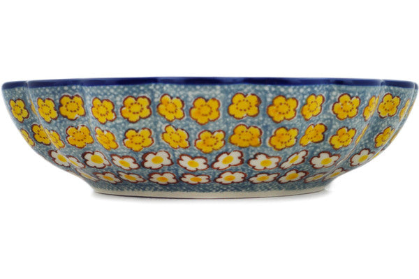 This Polish Pottery 7" Scalloped Bowl - Popcorn Daisies is handmade and handpainted by the Ceramika Artystyczna factory in Boleslawiec, Poland.