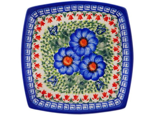 This Polish Pottery 7" Square Plate - Brilliant Butterfly Popp is handmade and handpainted by the Ceramika Bona factory in Boleslawiec, Poland.