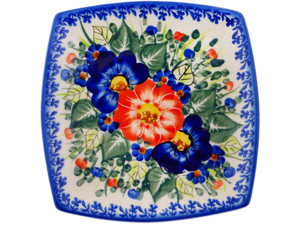 This Polish Pottery 7" Square Plate - Poppy Trio is handmade and handpainted by the Ceramika Bona factory in Boleslawiec, Poland.