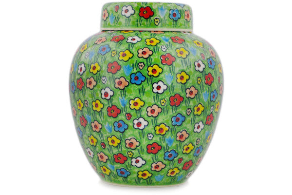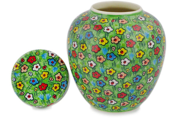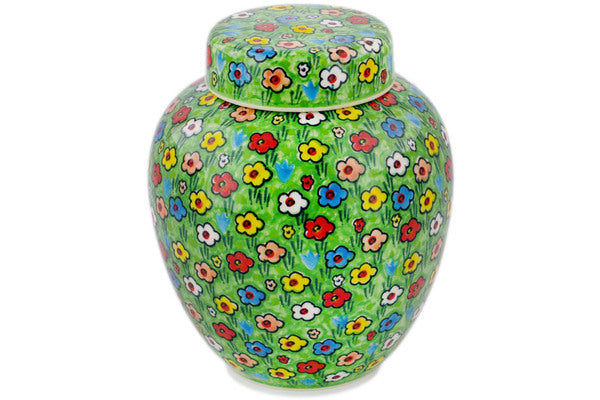 This Polish Pottery 7" Urn - Whimsical Garden is handmade and handpainted by the Ceramika Artystyczna factory in Boleslawiec, Poland.