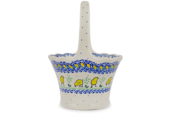 This Polish Pottery 8" Basket with Handle - 3347 is handmade and handpainted by the Ceramika Artystyczna factory in Boleslawiec, Poland.