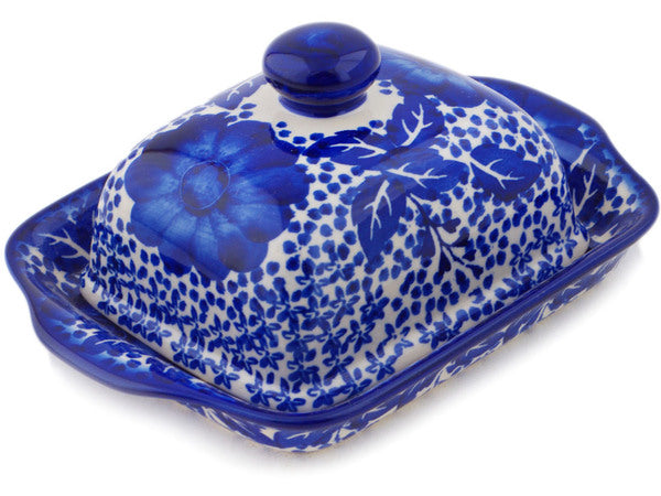 This Polish Pottery 8" Butter Dish - Cobalt Fantasy is handmade and handpainted by the Ceramika Bona factory in Boleslawiec, Poland.