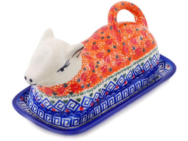 This Polish Pottery 8" Butter Dish - Grecian Fire Tulips is handmade and handpainted by the Ceramika Bona factory in Boleslawiec, Poland.