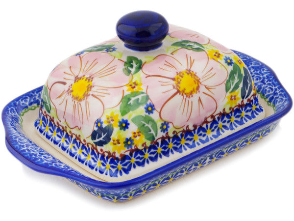 This Polish Pottery 8" Butter Dish - Pink Delight is handmade and handpainted by the Ceramika Nina factory in Boleslawiec, Poland.