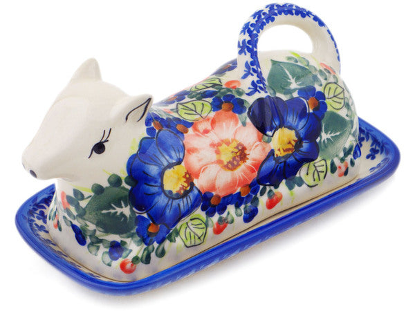 This Polish Pottery 8" Butter Dish - Poppy Trio is handmade and handpainted by the Ceramika Bona factory in Boleslawiec, Poland.