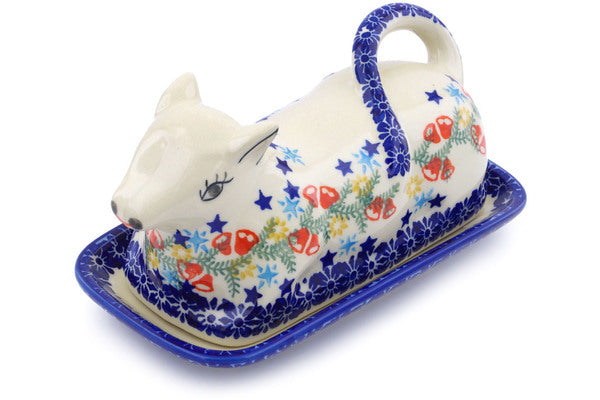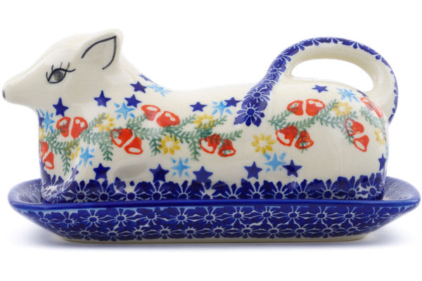 This Polish Pottery 8" Butter Dish - Wreath Of Bells is handmade and handpainted by the Ceramika Bona factory in Boleslawiec, Poland.