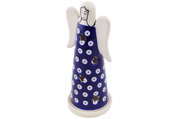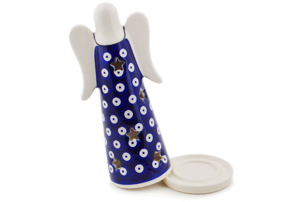 This Polish Pottery 8" Candle Holder - Peacock Eyes is handmade and handpainted by the Manufaktura factory in Boleslawiec, Poland.