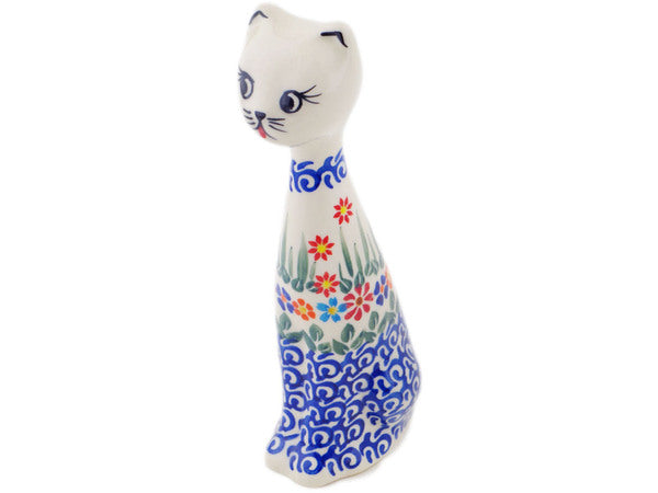 This Polish Pottery 8" Cat Figurine - Blissful Daisy is handmade and handpainted by the Ceramika Bona factory in Boleslawiec, Poland.