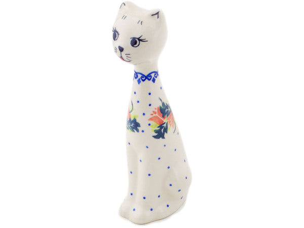 This Polish Pottery 8" Cat Figurine - California Poppies is handmade and handpainted by the Ceramika Bona factory in Boleslawiec, Poland.