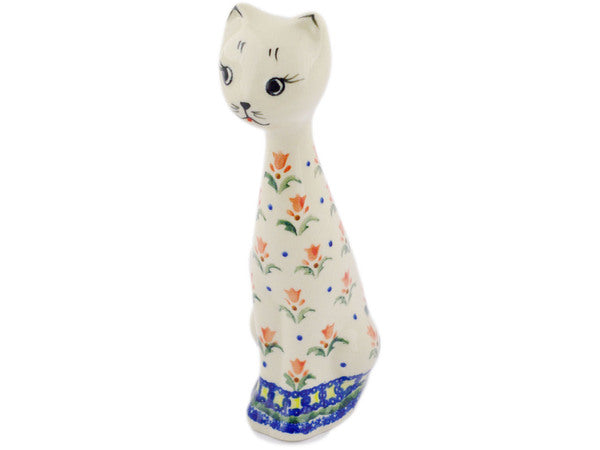 This Polish Pottery 8" Cat Figurine - Cocentric Tulips is handmade and handpainted by the Ceramika Bona factory in Boleslawiec, Poland.