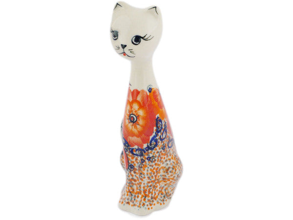 This Polish Pottery 8" Cat Figurine - Poppy Passion is handmade and handpainted by the Ceramika Bona factory in Boleslawiec, Poland.