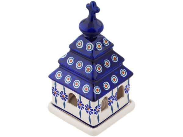 This Polish Pottery 8" Chapel Candle Holder - Peacock is handmade and handpainted by the Manufaktura factory in Boleslawiec, Poland.