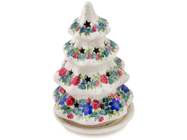This Polish Pottery 8" Christmas Tree Candle Holder - Springtime Wreath is handmade and handpainted by the Ceramika Artystyczna factory in Boleslawiec, Poland.