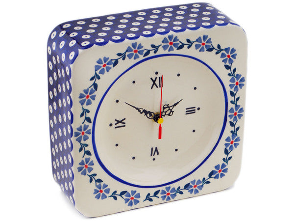This Polish Pottery 8" Clock - Peacock Forget-Me-Not is handmade and handpainted by the Manufaktura factory in Boleslawiec, Poland.