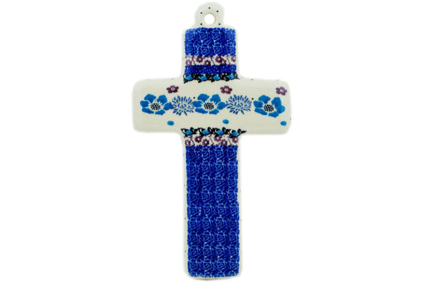 This Polish Pottery 8" Cross - Blooming Blues is handmade and handpainted by the Ceramika Artystyczna factory in Boleslawiec, Poland.