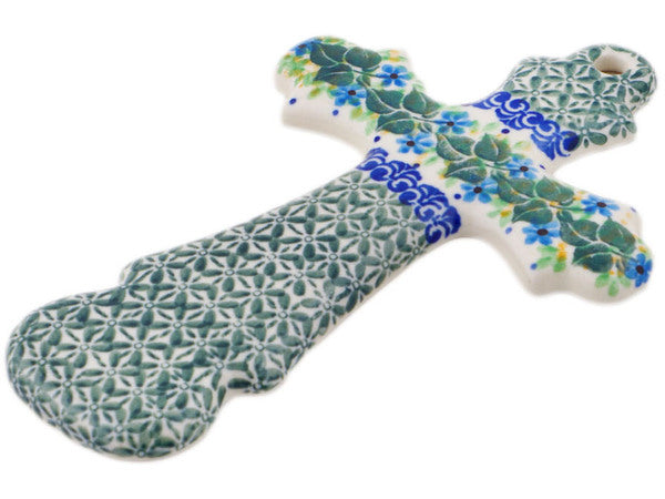 This Polish Pottery 8" Cross - Leaf Wreath is handmade and handpainted by the Ceramika Artystyczna factory in Boleslawiec, Poland.