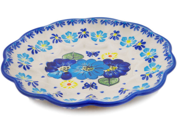 This Polish Pottery 8" Egg Plate - Endless Summer is handmade and handpainted by the Ceramika Bona factory in Boleslawiec, Poland.