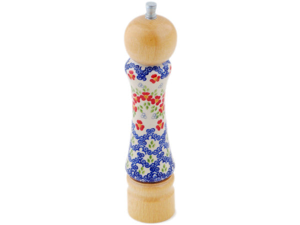 This Polish Pottery 8" Grinder - Red Chains is handmade and handpainted by the Manufaktura factory in Boleslawiec, Poland.